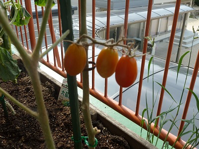 テラスのプランターで育てている、きゅうりとトマトが大きくなってきました。ギラギラの太陽にも負けず元気に育っています。今日はきゅうりの収穫。ちょっぴり形は変ですが、とってもおいしそう。トマトはあと少し。お昼にみんなで食べたいと思います♪