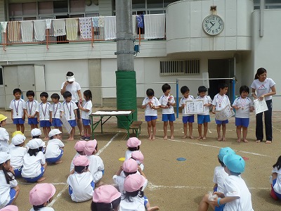 今日は、23日(日)に行われたお相撲大会で、幼稚園の代表として戦ってくれた12人の代表さんが、みんなにトロフィと賞状とメダルを見せてくれました!!応援してくれたみんなに、嬉しい報告ができてよかったね!!よくがんばりました!