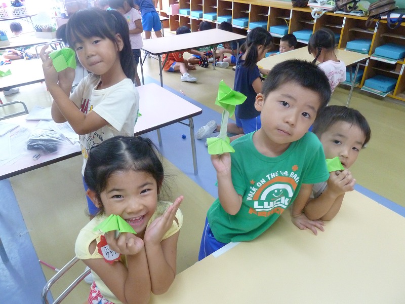 教室の中で、折り紙を折ったり、ブロック遊びをしたり、