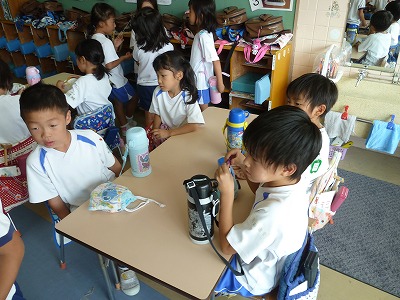 運動会の練習で体を動かした後は、おいしいおいしいお弁当の時間です!