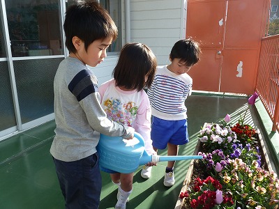 「わー!!お花かわいいね☆」「4月には咲くんじゃない?」といいながら