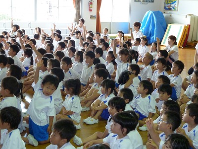 他学年と一緒に歌ったり、リトミックをしました♪お兄ちゃんお姉ちゃんクラスは小さいお友達の手をひいて、教えてあげたり、一緒にあそんであげたり。小さいお友達は、カッコイイお兄ちゃんお姉ちゃんに憧れて真似っこ☆また一緒に遊ぼうね♪