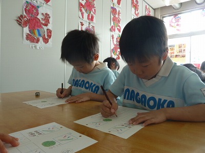 毎日行うプリント活動。続けることで、集中力や頑張る気持ちがだんだんとついてきました。今ではこんなに真剣な表情で取り組めるようになっています。子ども達の成長って本当にすごいですね!!