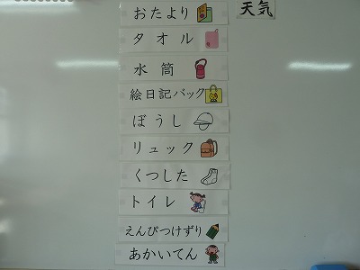 登園したら、白板に貼ってある絵カードの順番に、荷物整理を
