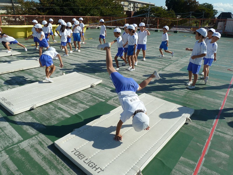 縄跳び、マット、鉄棒、倒立、側転、ボール…