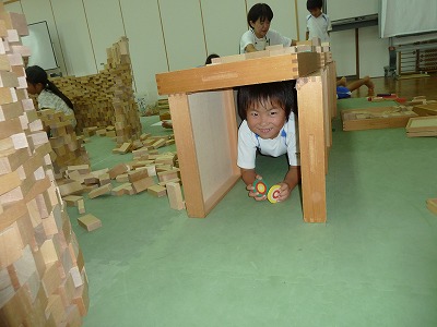 お友達と協力して、大きなものをつくったり、トンネルを作ってくぐったり