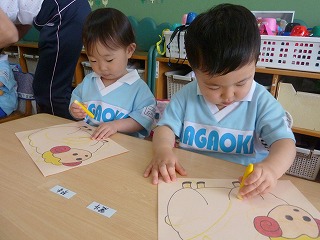 新聞紙をびりびり。小さく、たくさんちぎって新聞紙のシャワーにしたり、子ども達も大喜びです。次は、ボールを作ったり、おにぎりを作ったりして遊びたいと思います。