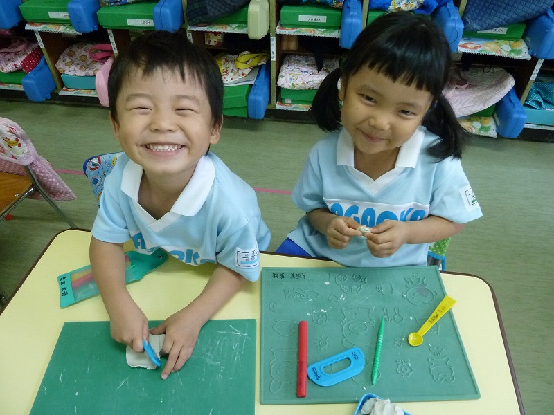「先生!みて!オラフだよ1」子ども達は粘土あそびがだーい好き♪入園当初は“へび”や“おだんご”を作る子が多かったですが、ケーキやクッキー、お友達の顔等、作るものも少しずつ高度なものに変わってきましたよ!次はどんなものを作ってくれるか楽しみです☆