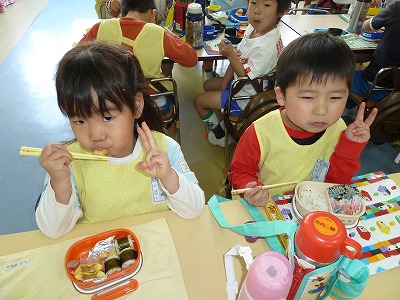 おうちの人の愛情たっぷりのお弁当に大喜びの子ども達でした♪