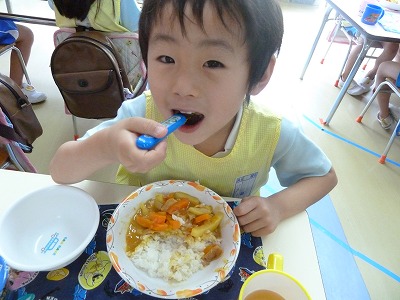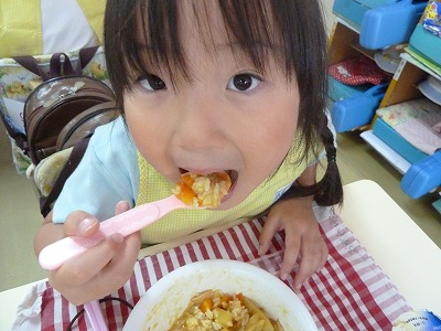 今日は、みんなの大好きな カレーライス!! 大きな口でアーン♪