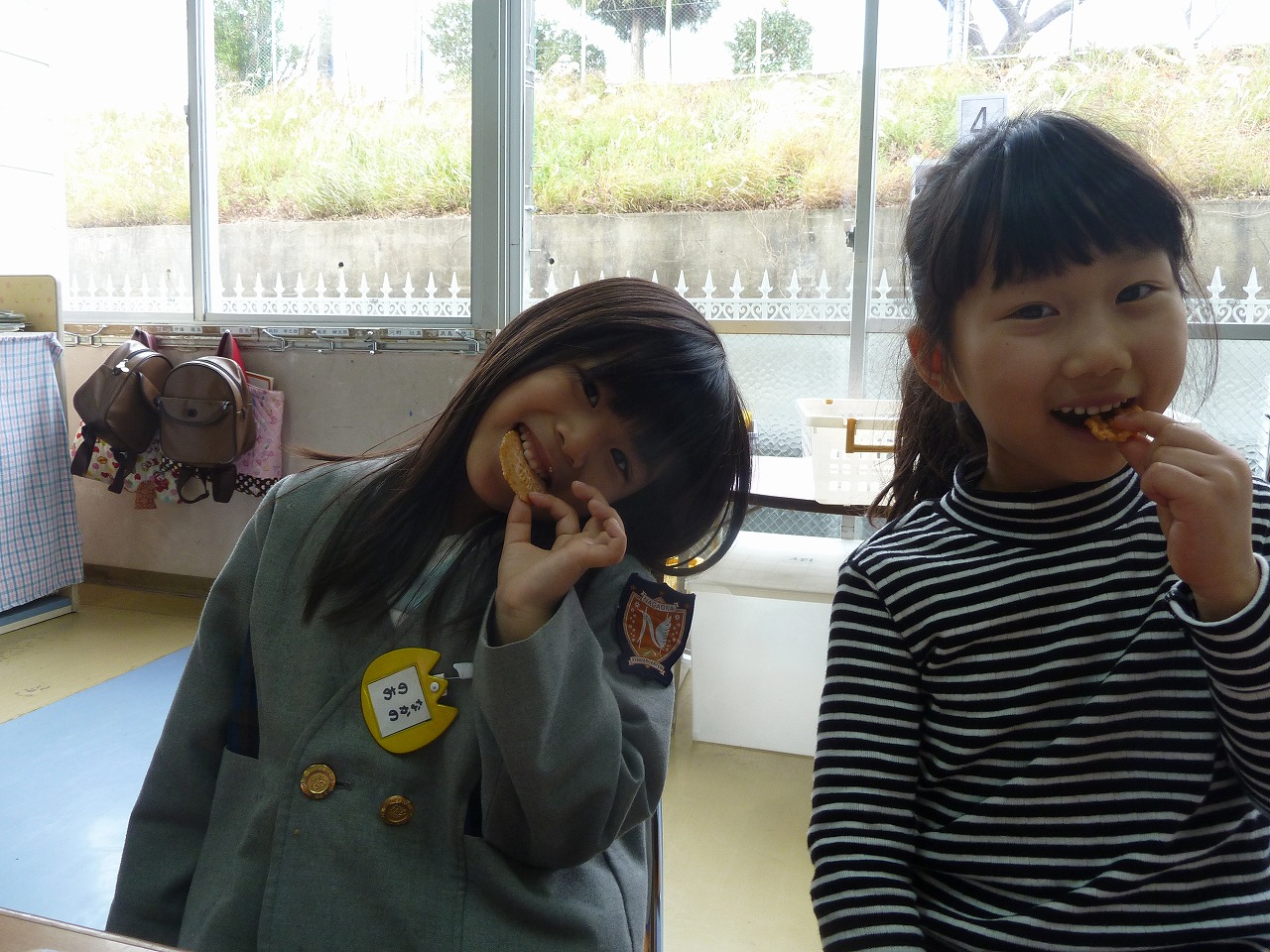 と楽しそうにおしゃべりしながらおやつを食べていました!