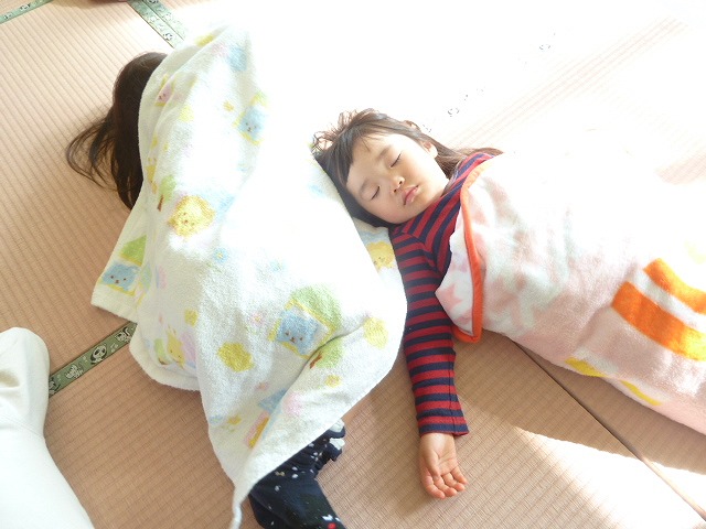 眠たそうに目をこすりながらお昼寝から起きて来た子ども達。