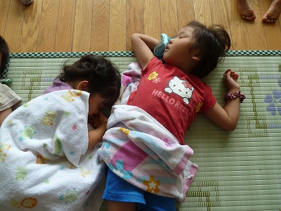 夏季保育も無事に終わり、夏休みを残すところあとわずかとなりました。 続いていた激しい雷雨もおさまり、今日はとてもいい天気で子どもたちも外でたくさん汗を流して遊んでいましたよ♪ たくさん走って、たくさん汗をかいたら疲れたようで、今日は横になるなり眠る子が見られました。 また来週も元気いっぱい遊ぼうね☆