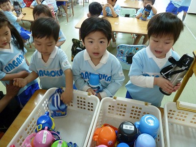 そんななかでも、水筒を自分でおいたり、靴下をはいたり,