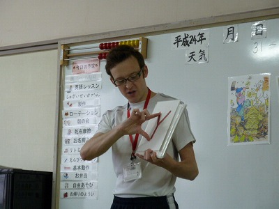 “基本動作”といって“行進”や“右向け右”など隊形移動を曲に合わせて行います。大きな声でカウントをとる子どもたち。クラスのみんなで合わせるのが楽しいようです。「できた~」と達成感でニコニコの子どもたちです。