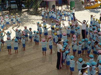 幼稚園ではローテーションのあとにフォークダンスをしています。