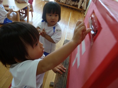 敬老の日に向けて、おじいちゃんおばあちゃんにお手紙を書いています。