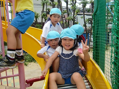 今日も外はあつ~い太陽に照らされていました。子ども達は、暑さに