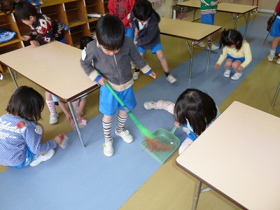 ご飯の後や、おやつの後はみんなでおそうじ!!