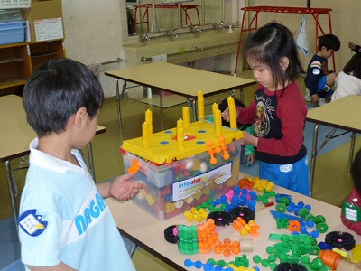 掃除が終わると、みんなはブロックで遊んだりカルタをして、仲良く遊びました。