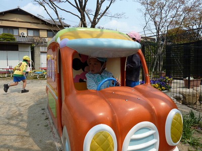 園庭に比べると、思いっきり走る!ということはできません。