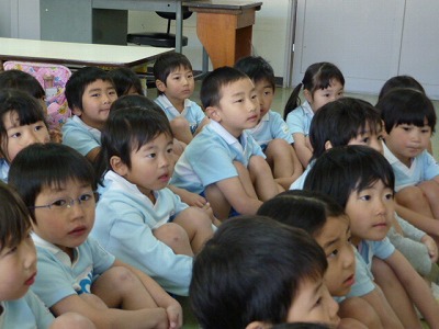 自分の顔を絵の具でぬりました!なんと・・・今回は初めて自分たちで服や髪、顔の色を絵の具でつくりました。絵の具をまぜて・・・水の量にもきをつけて・・・みんなとっても真剣!!!イキイキとした顔になりました♪