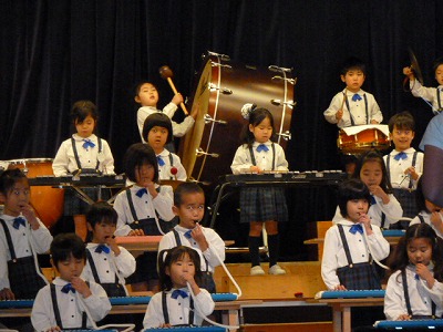 満足そうでた。歌や、最年少さんのリズム遊び、各学年の合奏。