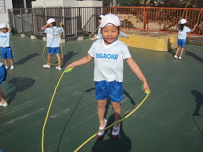 縄跳びでは、10回連続跳びを目標に頑張っています!