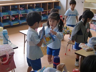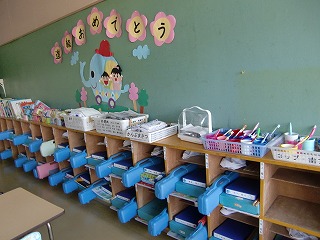 きのうはクラス発表とお道具入れがありました。新しいお友達、