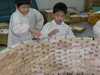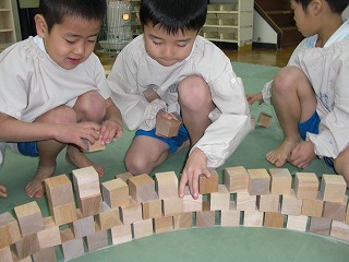 幼稚園最後の積み木、今日はかなりあ組全員で大きい物を作ることにしました。
