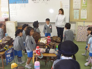 今日のお天気はあいにくの雨。そんな時は年中さんは年長さんと一緒に