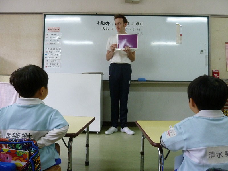 大好きな英語レッスンの時間。ローリー先生が教室に来てくれると子供達の笑顔が溢れます。大きな声で名前を言ったり、少しずつ受け答えも出来るようになってきましたよ☆また来週が楽しみです。