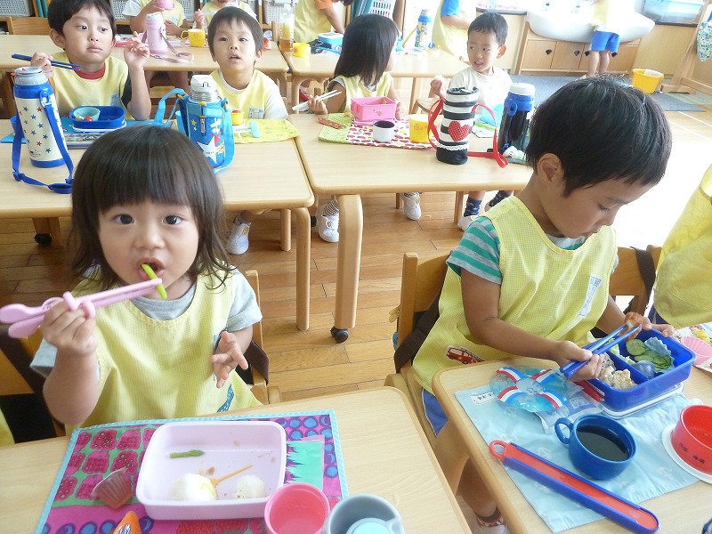 たくさん体を動かした子供達はお腹ぺこぺこ。