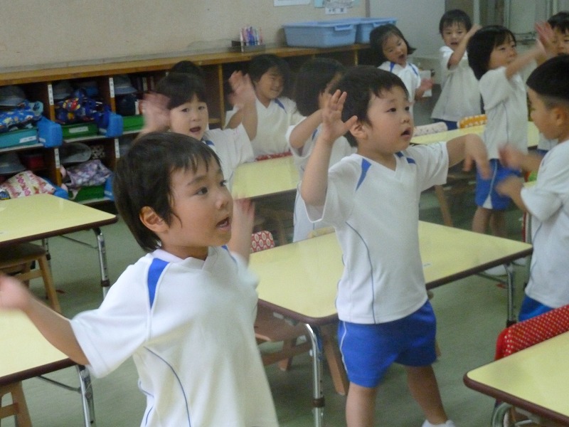 「Hello~♪」すれ違う度に優しく声をかけてくれる大好きなローリー先生。「jump!!」「run!!!」体を動かしながら自然と英語を楽しんでいる子供達。受け答えも少しずつ理解してきたようですよ!大きなローリー先生からの“たかいたかい”とっても嬉しそうです☆