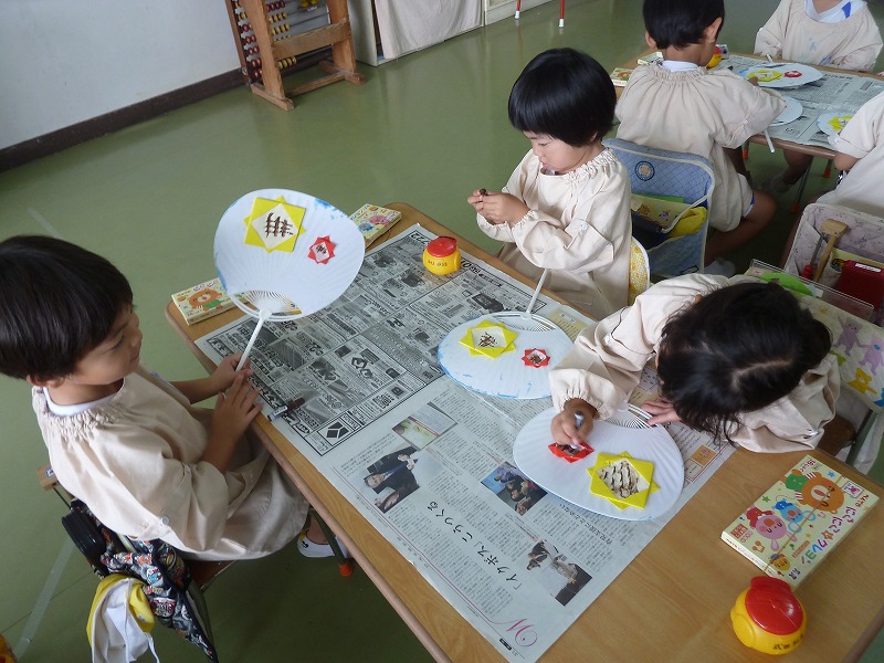 「1・2・3・・・」20玉そろばんを使って数遊びをしました。「あとひとつ増えるといくつかな???」20玉そろばんを使って考えます。「先生!分かったよ!!」「かんたん!かんたん!!」子どもにとって数もおもしろい遊びの一つです。