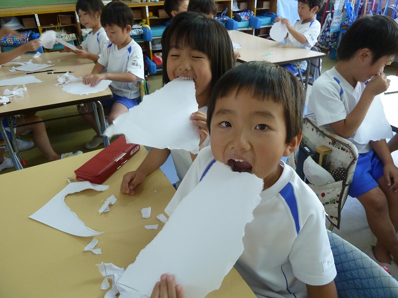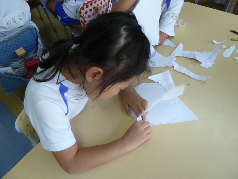 指でちぎるのは難しかったのですが、一生懸命頑張りました!
