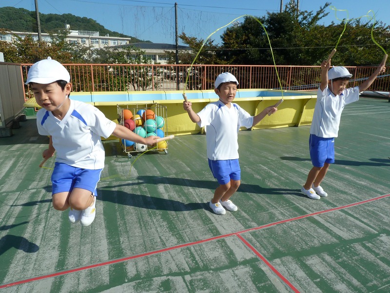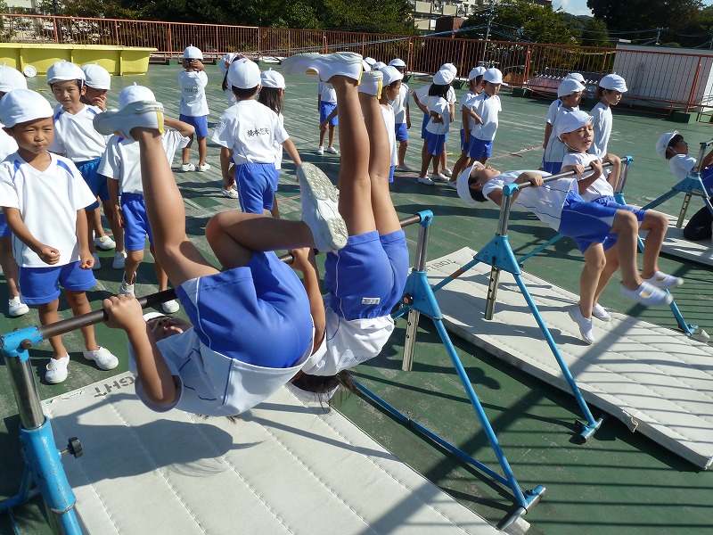 縄跳び、マット、鉄棒、倒立、側転、ボール…
