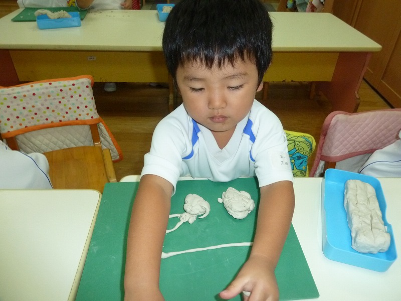 しゃぼんだま遊びが大好きな子どもたち。今日からしゃぼんだまをしている絵を描き始めました。筆を使うのもだんだんと上手になってきましたよ!完成が楽しみですね!!