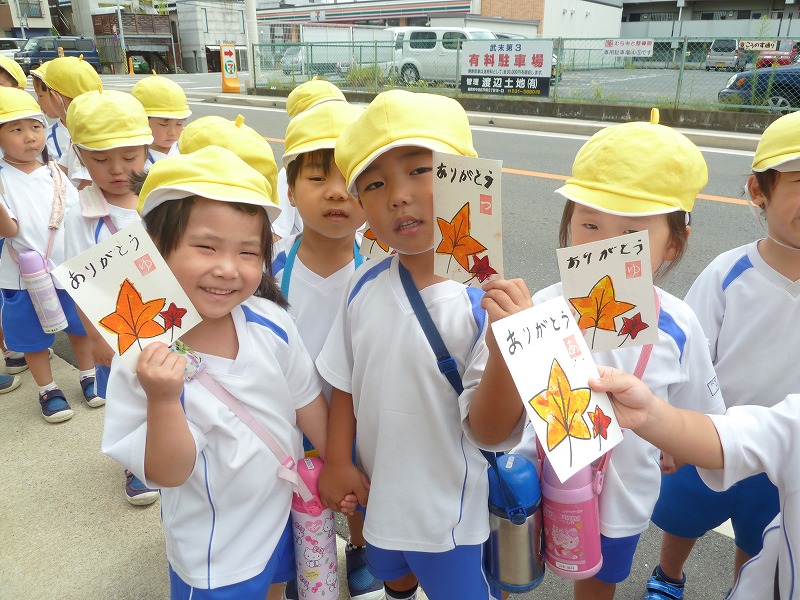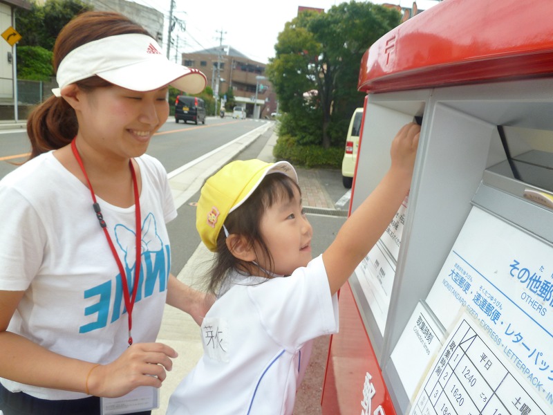 大好きなおじいさん、おばあさんに心を込めて描いた敬老のはがき。近くのポストまで投函しにいきました。「おじいちゃんとおばあちゃん喜んでくれるかな~?」と子どもたちもわくわくしていましたよ。