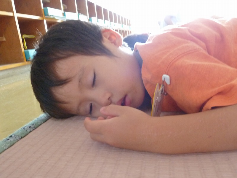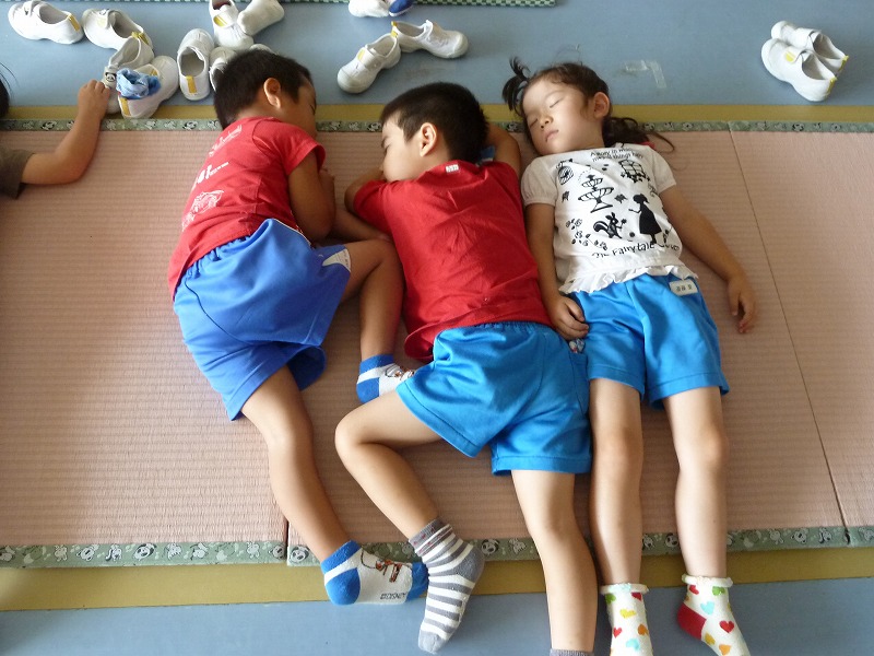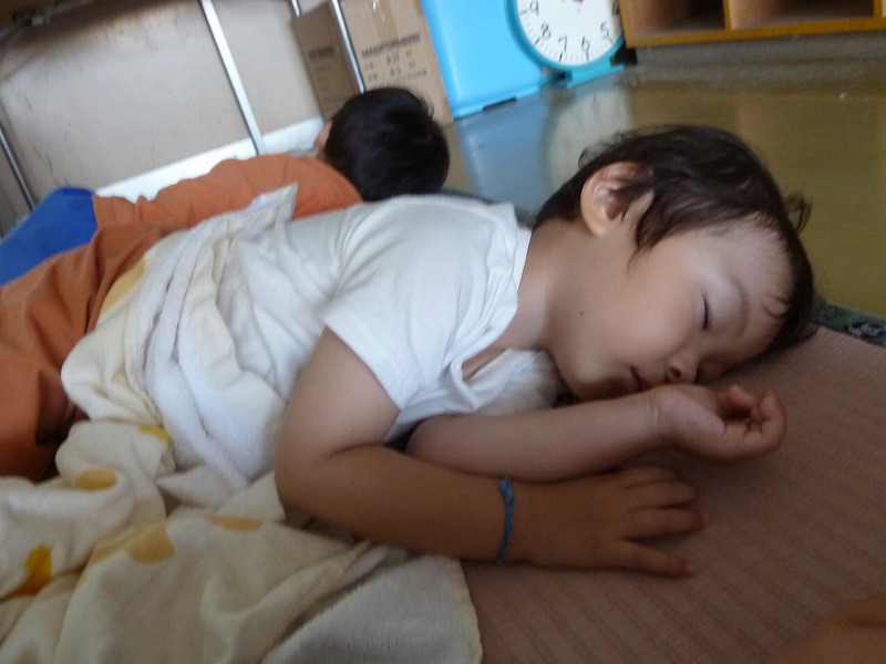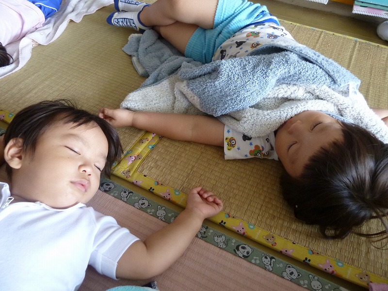 お友達とギューッてくっついて寝ている子、なかなか寝られなくてヒソヒソお話している子。。。