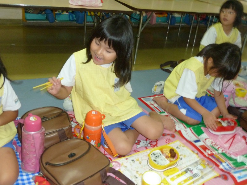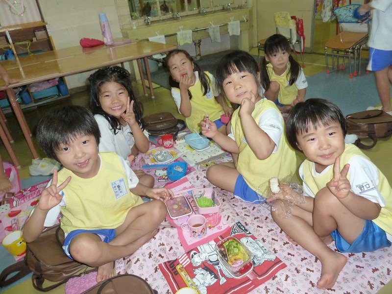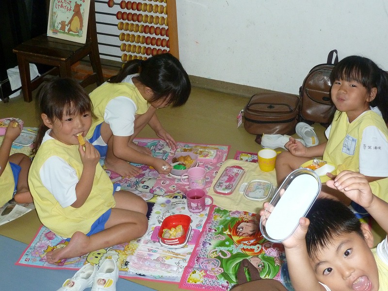 台風の接近に伴い、今日は自由登園。登園人数が少なかったこともあり、どの学年も2クラス合同での保育となりました♪子ども達はあっという間に仲良くなり、違うクラスのお友達とも楽しく遊んでいましたよ!