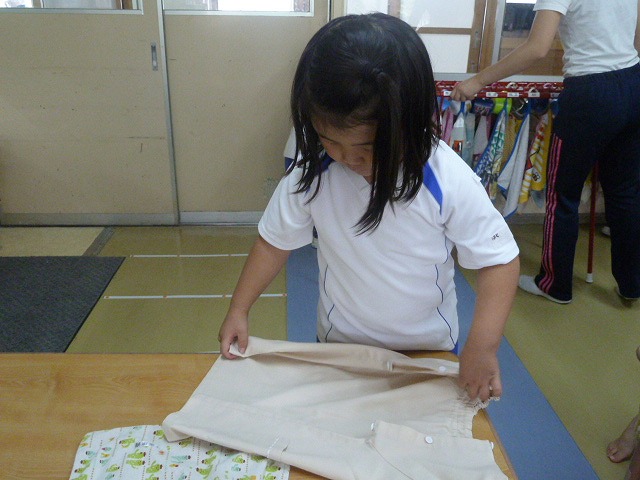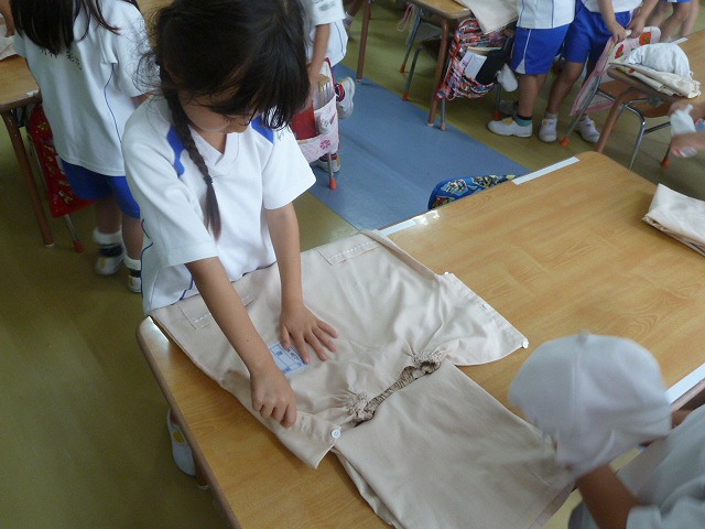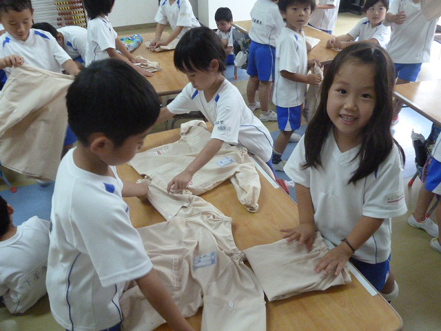 「てでもって、かかとをそろえて、ぴったしグー。」今、幼稚園ではこの言葉を合言葉に靴を揃えて直すようにしています。靴がそろうと心も揃います。みんなで一緒に頑張っています。