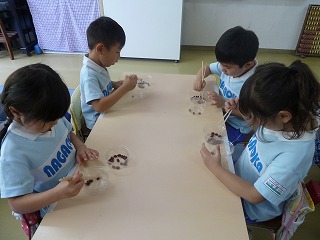 それでも豆をつまむのが随分上手になってきました☆