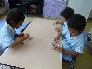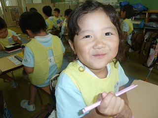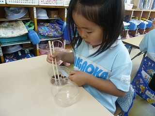 正しいお箸の持ち方の練習を幼稚園でもしています。