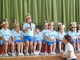 昨日は5月生まれの誕生会でした。発表するお友達はドキドキしながらもかっこよくステージの上で頑張っていましたよ。先生からのプレゼントは「おおかみの誕生日」のペープサート。みんな楽しそうに見ていました。