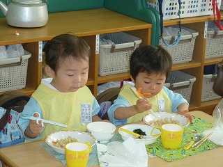 待ちに待った給食が、最年少組でも始まりました!