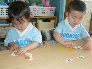 4ピースのひよこのパズル、見本を見ながら集中して取り組んでいました。
