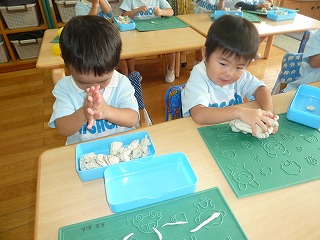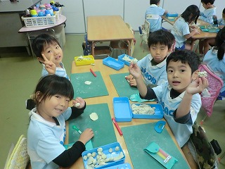 ねんどで食べ物やお人形を作ったりして遊んでいます♪