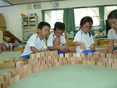 お友達と協力して、大きなものをつくったり、トンネルを作ってくぐったり