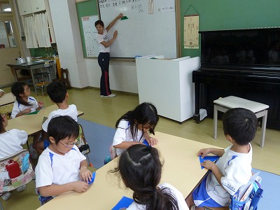 運動会の練習で体を動かした後は、おいしいおいしいお弁当の時間です!